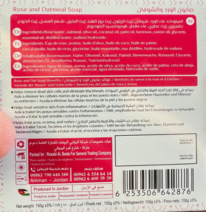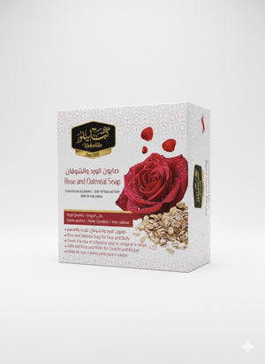 صابون طبيعي عالي الجودة مصنوع من ماء الورد والشوفان مع مزيج من زيت الزيتون، وزيت جوز الهند، وشمع العسل، وزيت الخروع لتنظيف البشرة بلطف وتهدئتها من الالتهابات والتهيّجات.